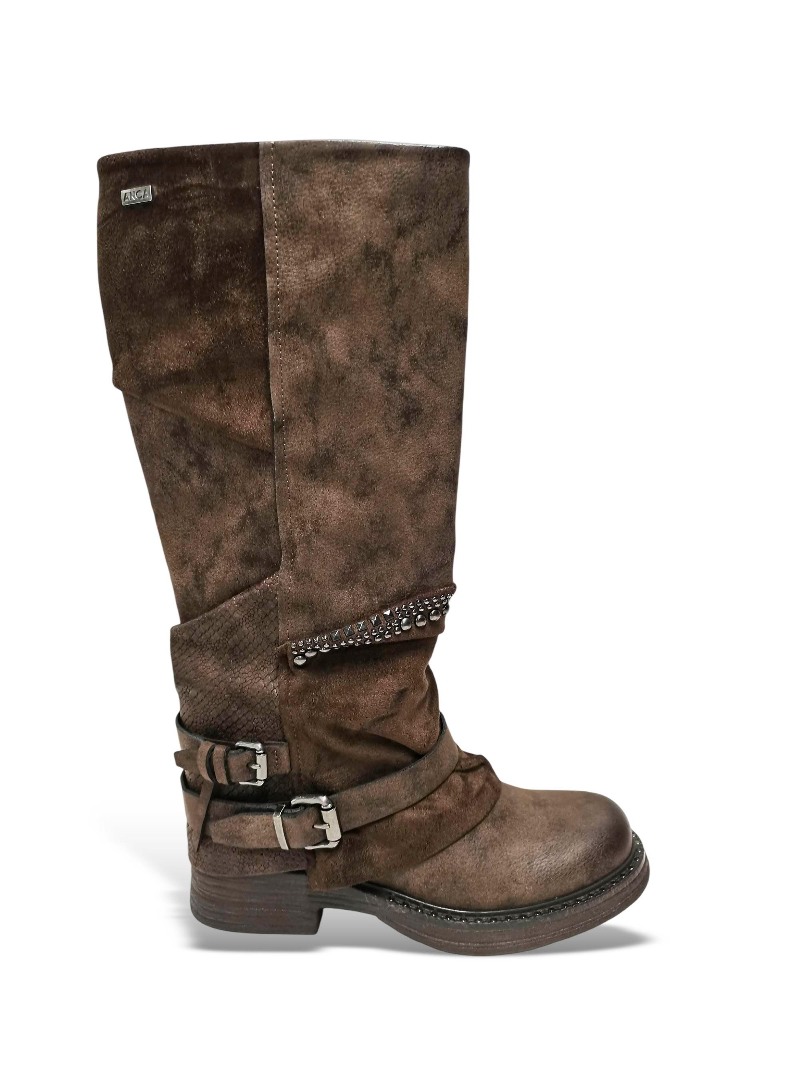 BORCEGO ALTO DE ECO CUERO Y MICRO CON CINTOS