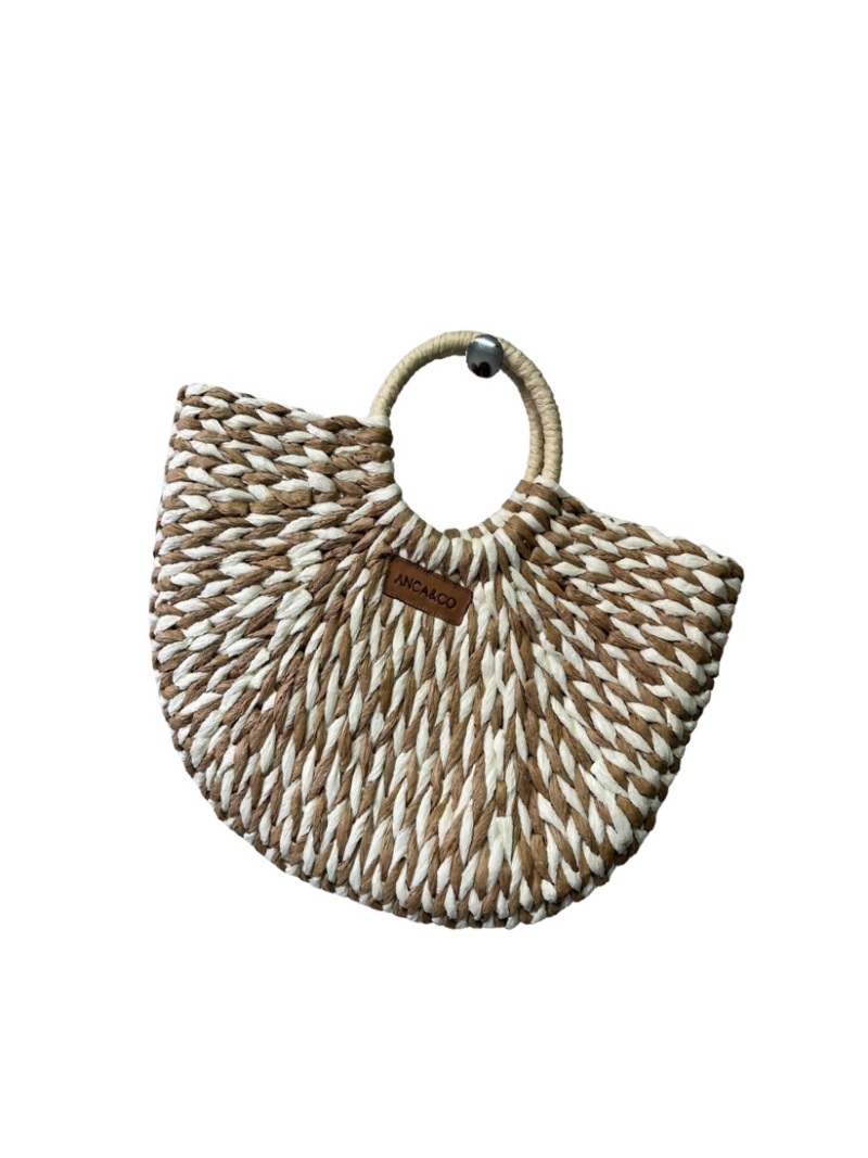 Tonos tierra con crudo que evocan la calidez del verano y la frescura natural. Tejido a mano, cuenta con asas redondas forradas y una estructura firme que mantiene la forma. Ideal para llevar lo esencial con estilo, ya sea en la ciudad o en la playa. Medidas aprox.: 40 cm x 28 cm. Liviano, resistente y con etiqueta de cuero grabada.