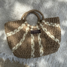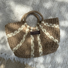 Cartera de mano ANCA&CO en tejido natural tipo rafia. Forrada, con manijas circulares rígidas en tono claro. Medidas aprox: 39 x 25cm.