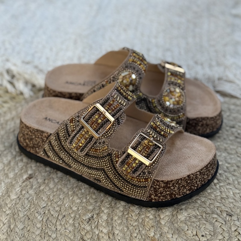 Zueco con hebillas y canutillos
