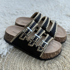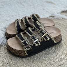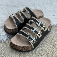 Zueco con hebillas y pespunte