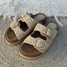 Zueco birk tejido con piedras. Horma amplia, Altura atras 3 cm y adelante 2 cm. ver medidas: