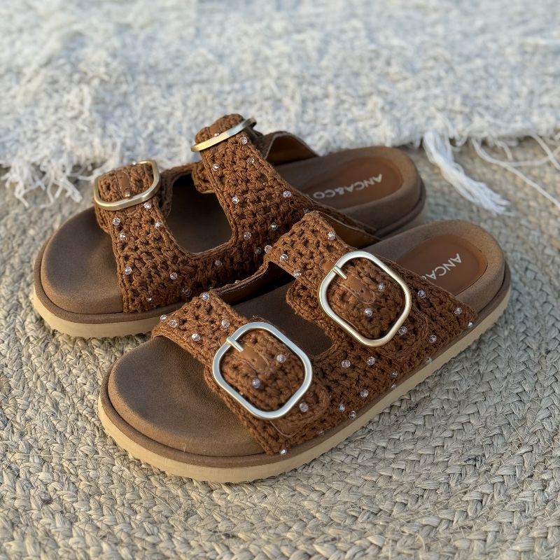 Zueco birk tejido con piedras. Horma amplia, Altura atras 3 cm y adelante 2 cm. ver medidas: