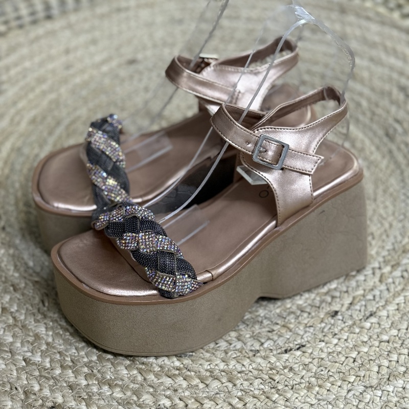Sandalia con tira trenzada con brillo