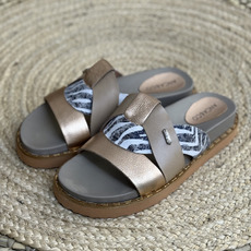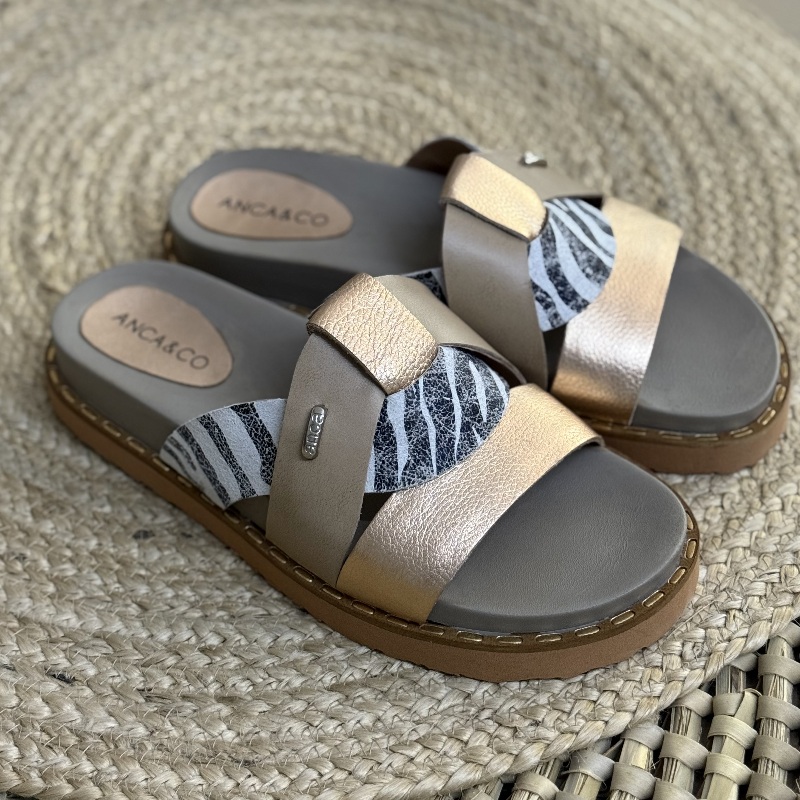 ZUECO DE CUERO CON TIRAS COMBINADAS
