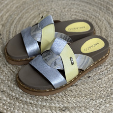 ZUECO DE CUERO CON TIRAS COMBINADAS