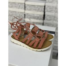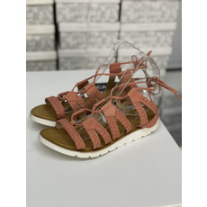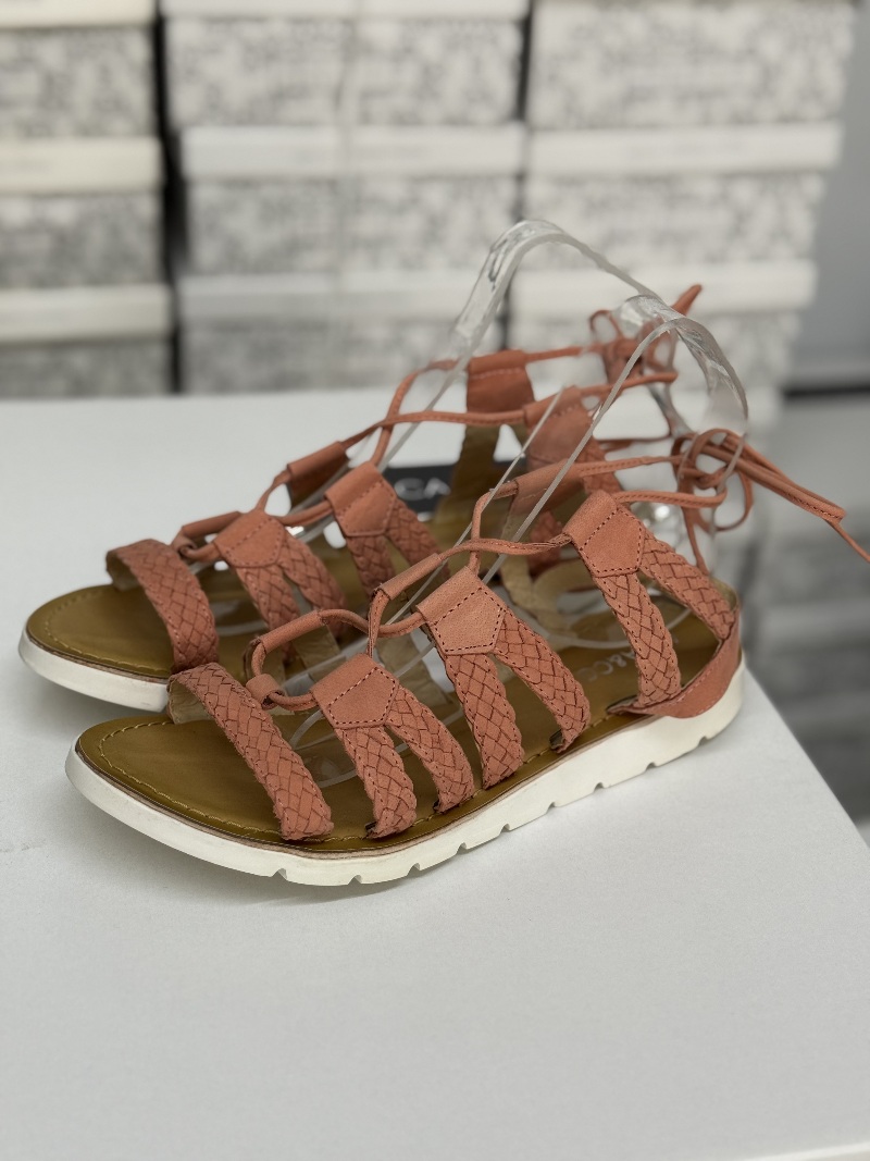 Sandalias con multiples trenzas que se anudan al tobillo.