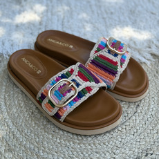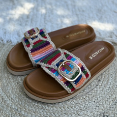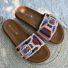Zueco tejido con hebilla, Horma amplia, Altura atras 3 cm y adelante 2 cm