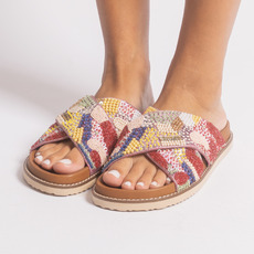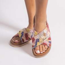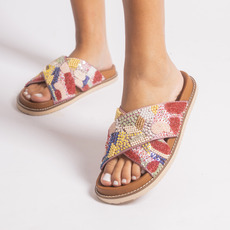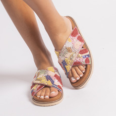 Zueco cruzado con piedras y canutillos, Horma amplia, Altura atras 3 cm y adelante 2 cm