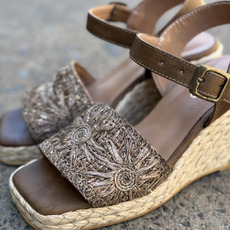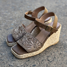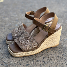 SANDALIA CON BASE DE YUTE Y FAJA TEJIDA Y HEBILLA