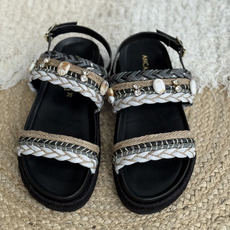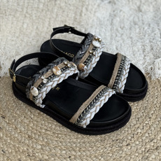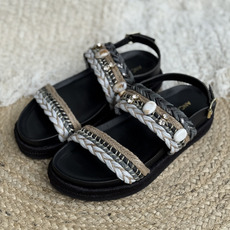 Sandalia con trenzas y piedras, Horma amplia, Altura atras 4.5 cm y adelante 3 cm