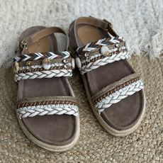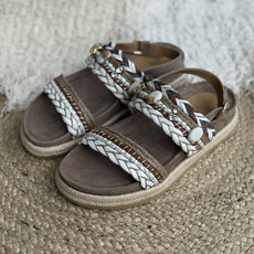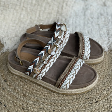 Sandalia con trenzas y piedras, Horma amplia, Altura atras 4.5 cm y adelante 3 cm
