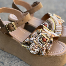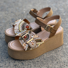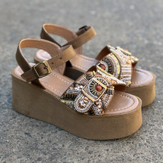 Sandalia con hebilla y faja con detalle de piedras y base liviana