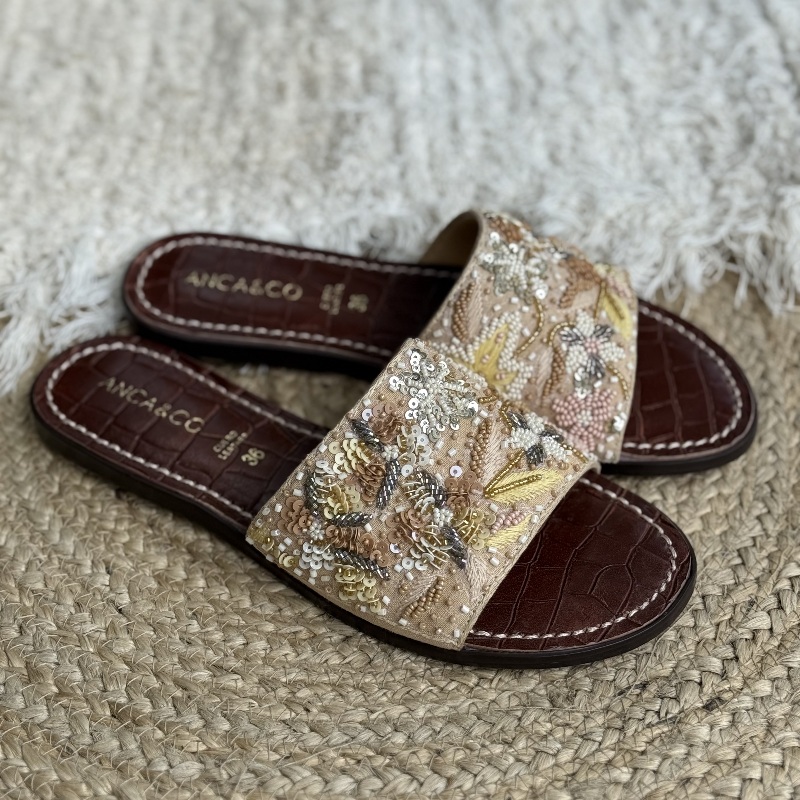 Zueco con canutillos y piedras, Horma amplia, Altura atras 1 cm y adelante 0.5 cm