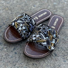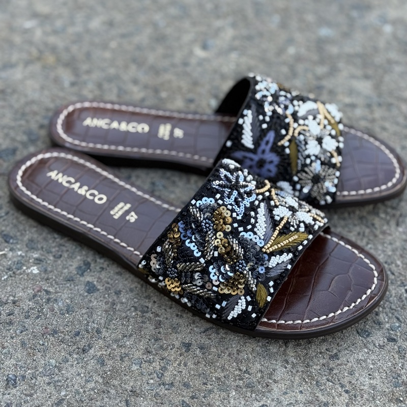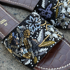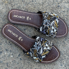 Zueco con canutillos y piedras, Horma amplia, Altura atras 1 cm y adelante 0.5 cm