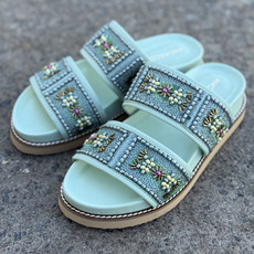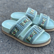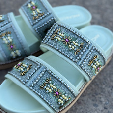 Zueco con canutillos y piedras, Horma amplia, Altura atras 3,5 cm y adelante 2 cm