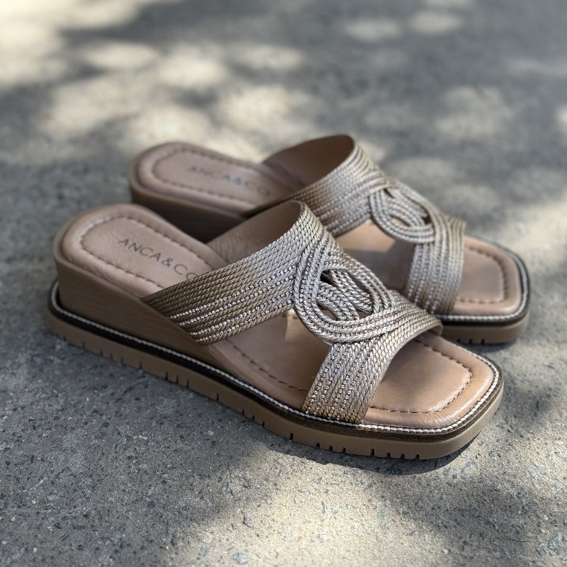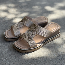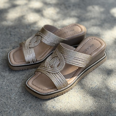 Zueco taco chino liviano con tiras cruzadas con piedras