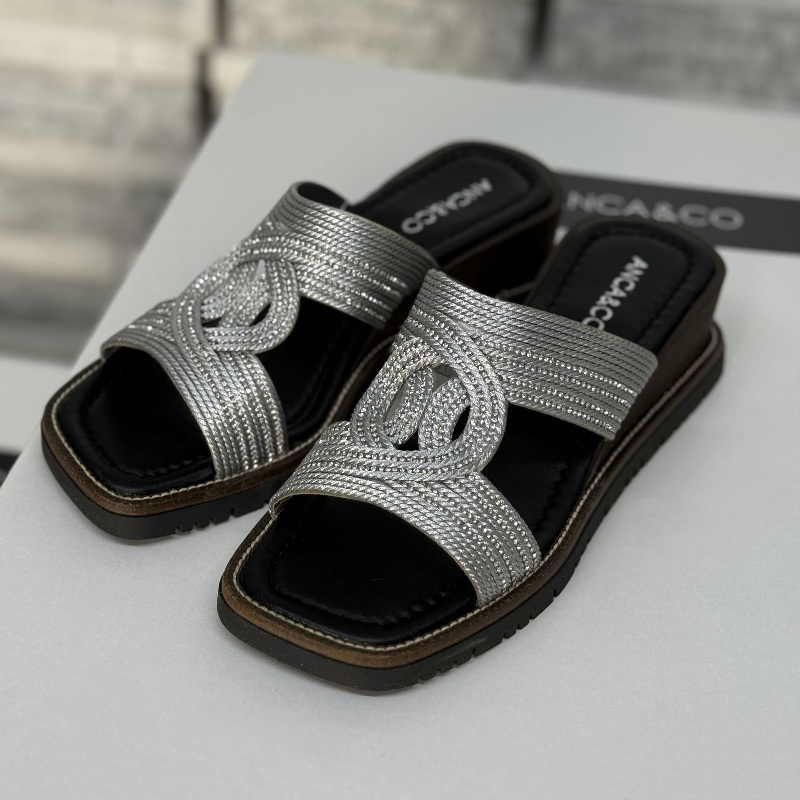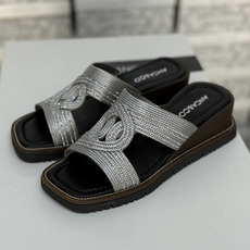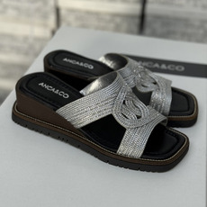 Zueco taco chino liviano con tiras cruzadas con piedras